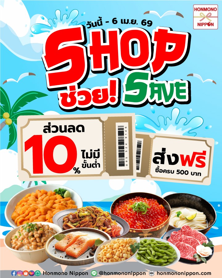 เมื่อสั่งซื้อสินค้ายอดรวม 500 บาท ขึ้นไป *ยกเว้นพื้นที่ห่างไกล และพื้นที่เกาะ
