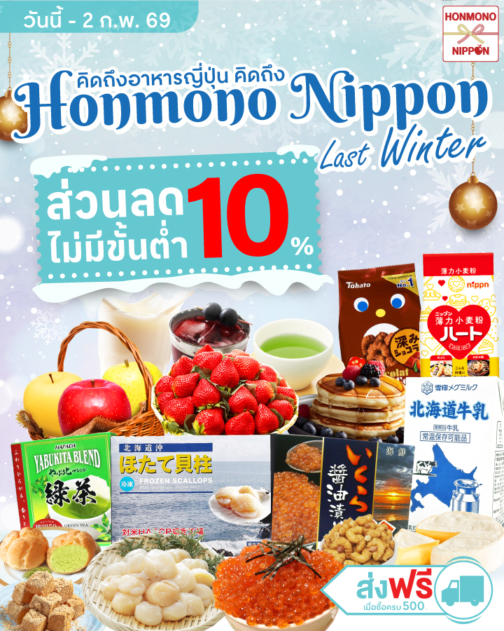 เมื่อสั่งซื้อสินค้ายอดรวม 500 บาท ขึ้นไป *ยกเว้นพื้นที่ห่างไกล และพื้นที่เกาะ